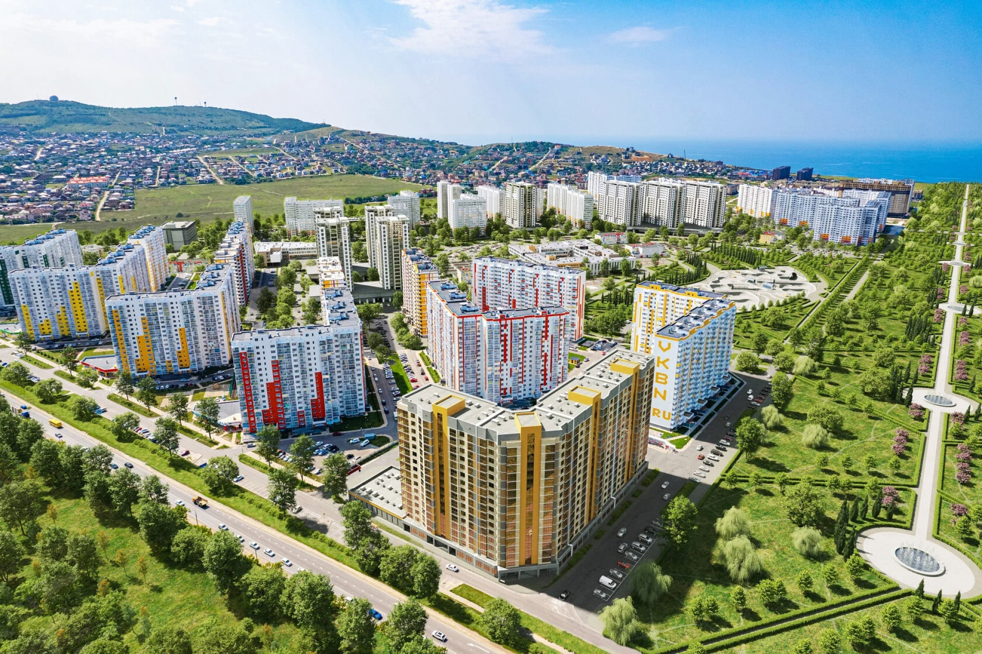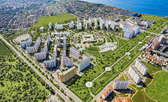 транспортная развязка, магазины, места отдыха и развлечений, парковые зоны.